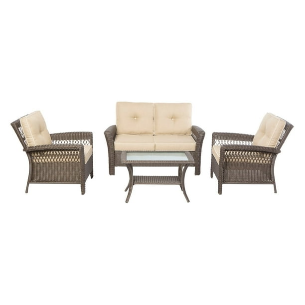 Alfresco Home Isabella All Weather Wicker 4 Piece Conversation Set Walmart Com